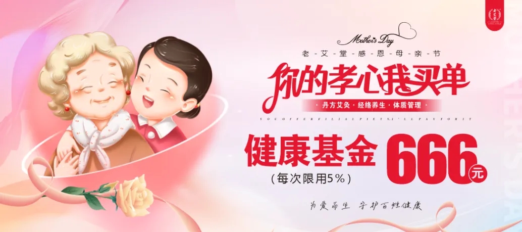 老艾堂母親節(jié)專屬健康孝心卡,限量發(fā)售,特別的愛給特別的她。